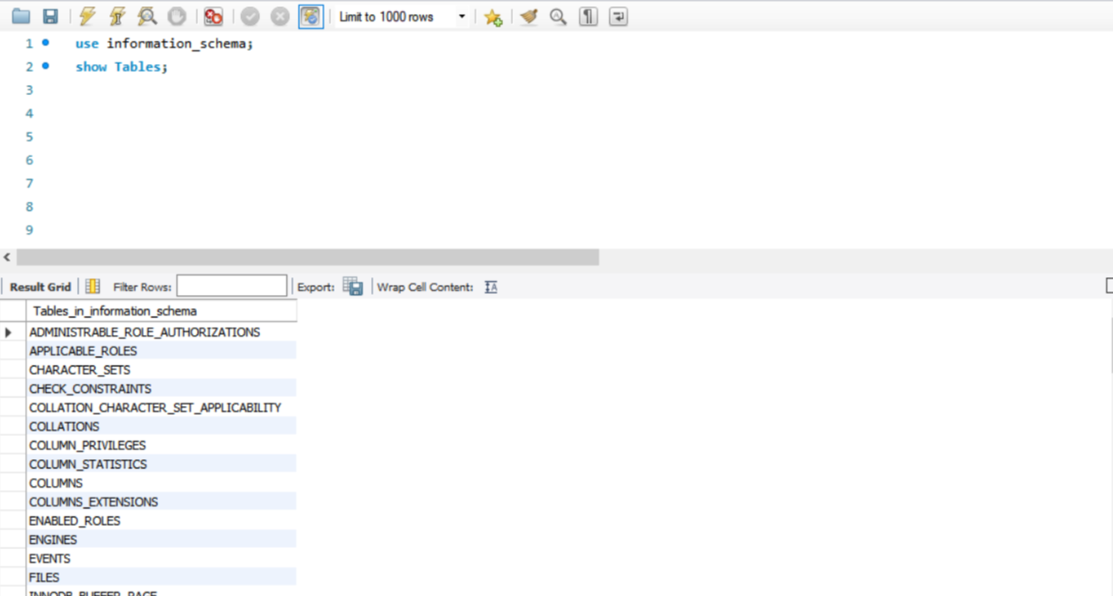 이런 경우 모든 데이터베이스에 기본적으로 적재되어 있는 "Information_schema"를 사용하면 된다.